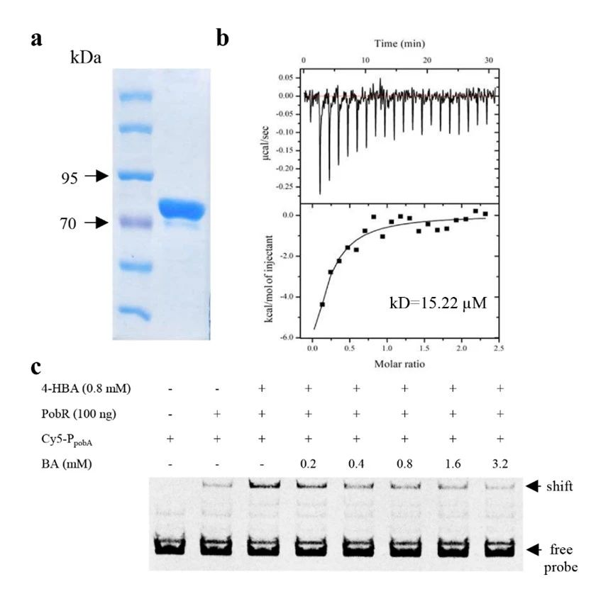 图6 BA能够结合PobR,抑制PobR/4-HBA复合物与pobA启动子的结合