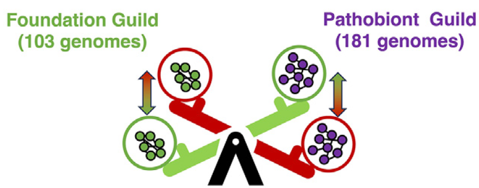 图1.左为103个基石功能群基因组,右为181个病生功能群基因组