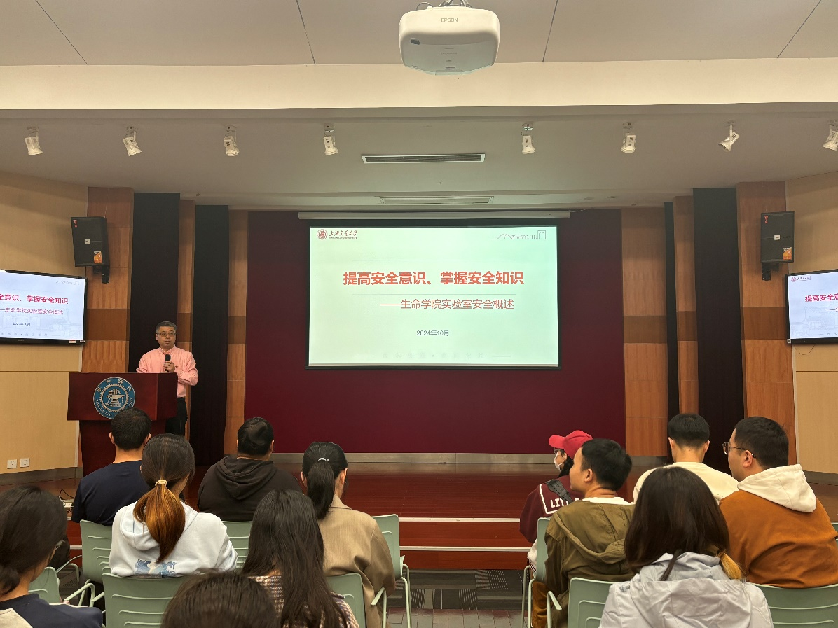 为了进一步加强2024级研究生及新进教职工的实验室安全意识,提高师生紧急疏散应对能力,打造实验室安全环境。10月22日,生命科学技术学院在树华报告厅举行2024级研究生及新进教职工实验室安全教育活动。会议邀请生命科学技术学院副院长林双君、保卫处所骋、资产管理与实验室处刘闯做专题培训。生命科学技术学院2024级硕博研究生及新进教职工共240余人参加会议。会议由实验室与公共资源管理办公室主任谭晶主持。