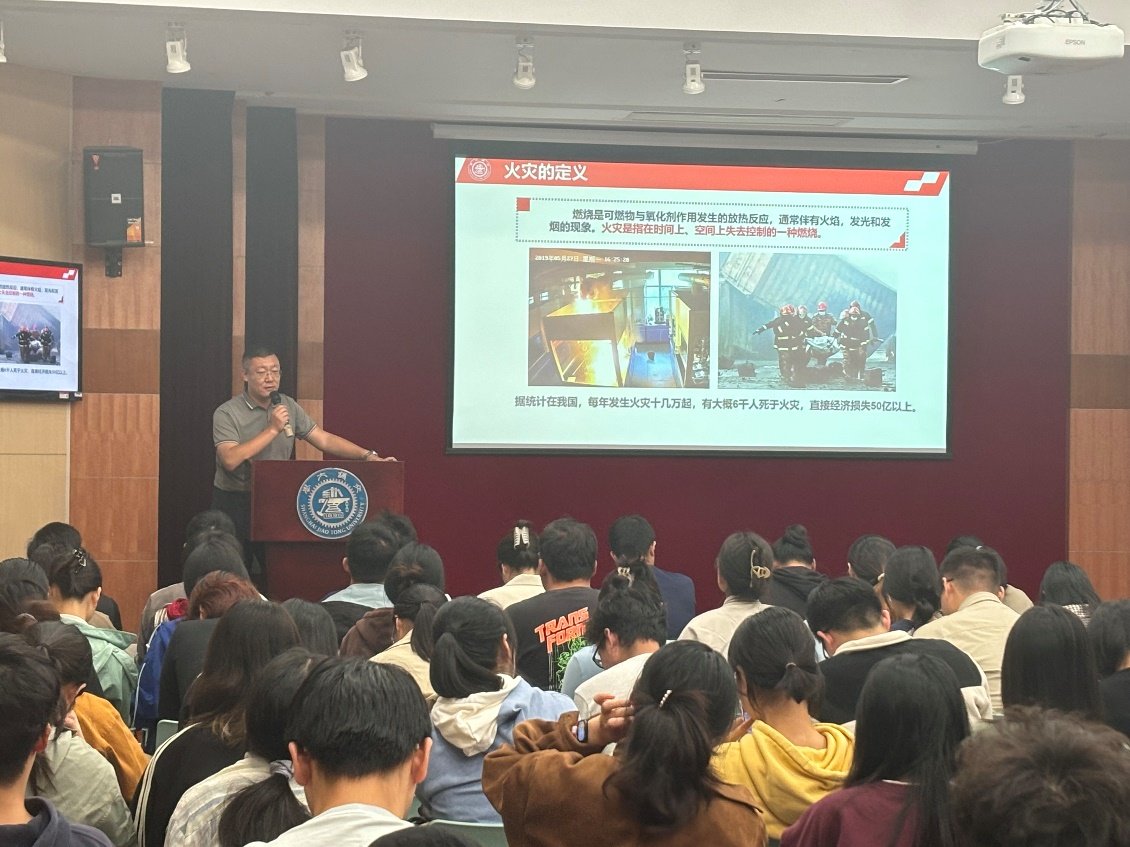学校保卫处消防科科长所骋介绍了火灾的案例警示及灭火的基本常识等。他用多个近年来高校发生的消防案例,让师生直观感受到消防安全无小事,哪怕很小的疏忽都会酿成大祸。