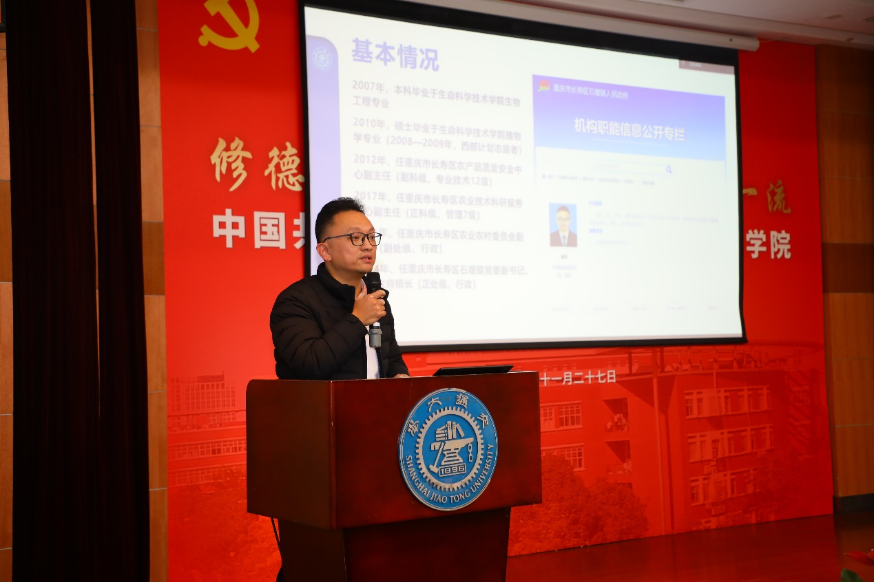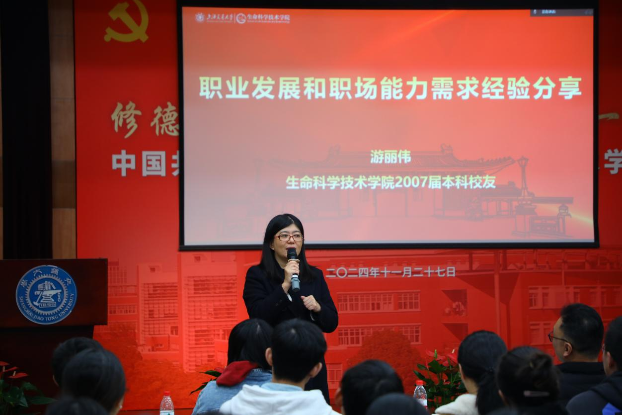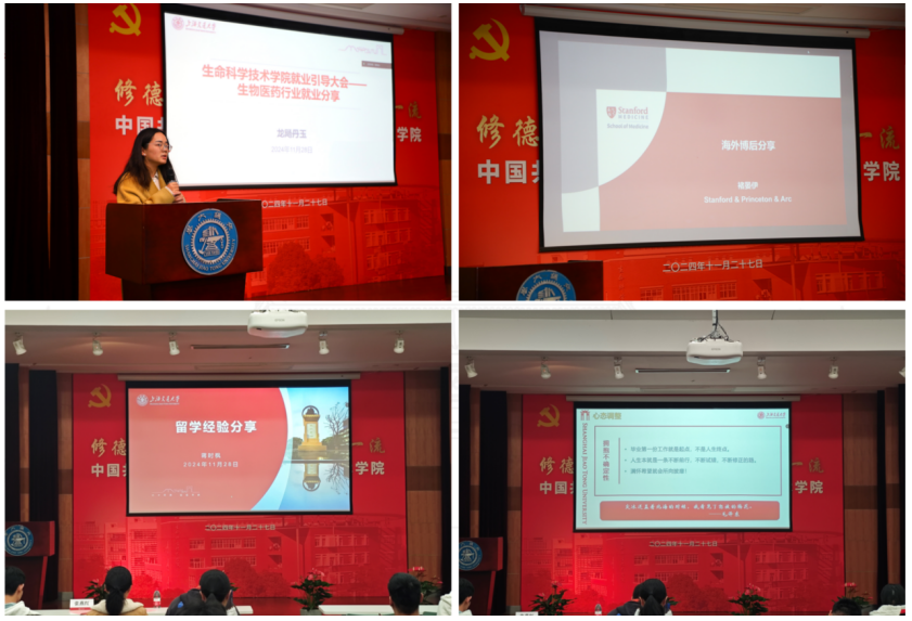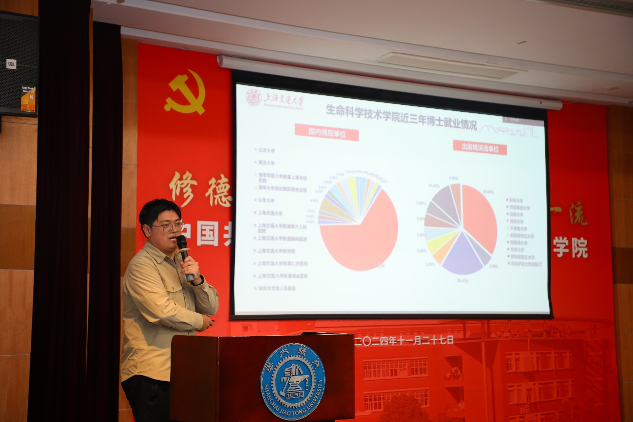 为强化就业引导服务,提升就业引导质量,全面推进就业工作,2024年11月28日,上海交通大学生命科学技术学院在生命药学楼树华多功能厅举办2025届毕业生就业动员大会。学院2010届硕士校友,重庆市长寿区石堰镇党委副书记、镇长杨杰,学院2007届本科校友游丽伟,学院党委副书记张燕红,毕业生校友代表褚晏伊、蒋时枫、赖宇琴、龙飏丹玉、王慕瑶以及全体2025届毕业生出席大会,会议由学院就业工作指导老师陈伟志主持。