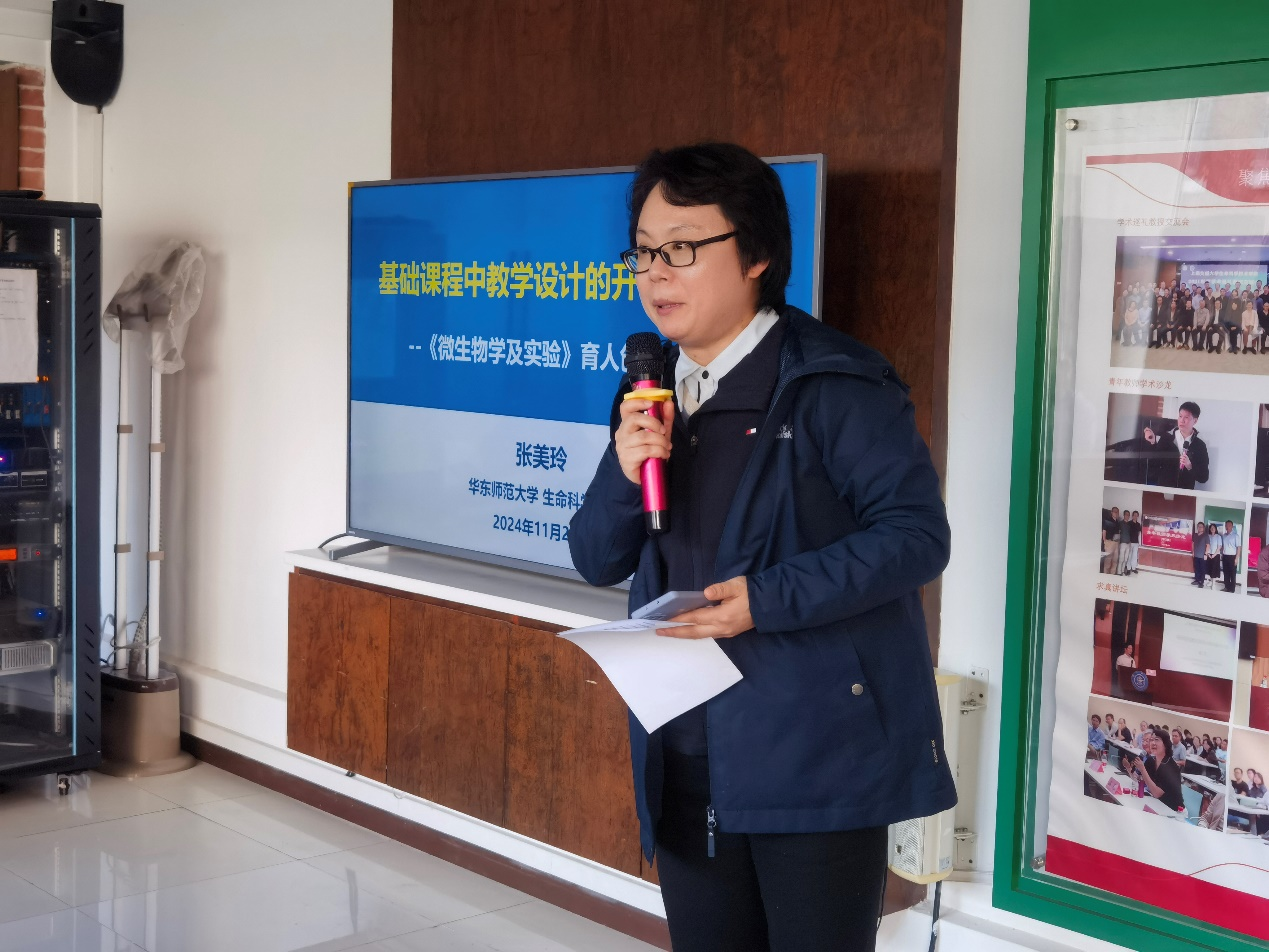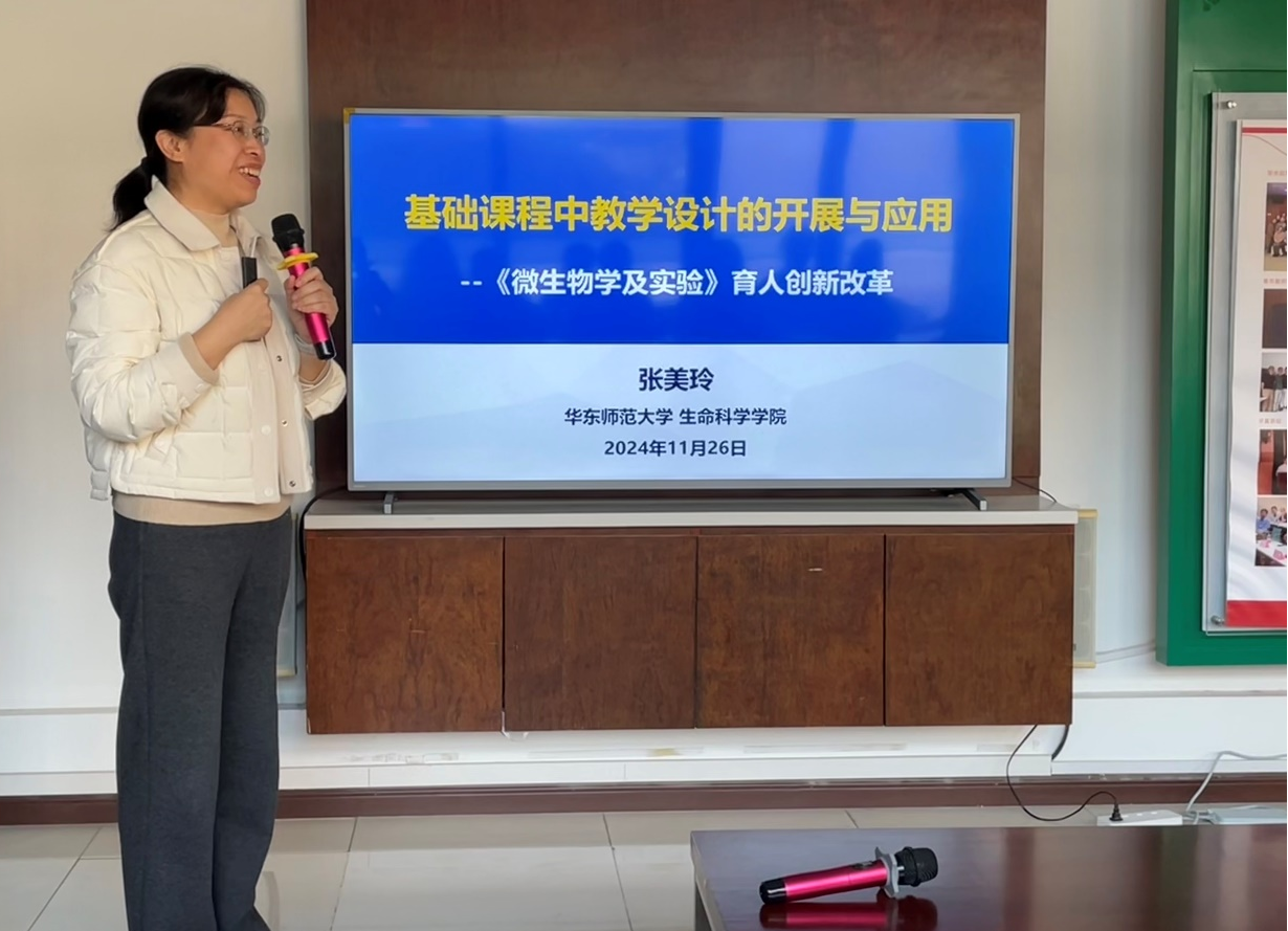 为进一步发挥党建引领助力教书育人,推动理论课与实验课的交叉融合。2024年11月26日,实验教学中心-仪器平台党支部联合微生物系教工党支部在教工之家举行11月份主题党日活动暨第23期教学沙龙。本次活动邀请第四届全国高校教师教学创新大赛一等奖获得者、华东师范大学生命科学学院张美玲教授,分享她在基础课程中教学设计的开展与应用。