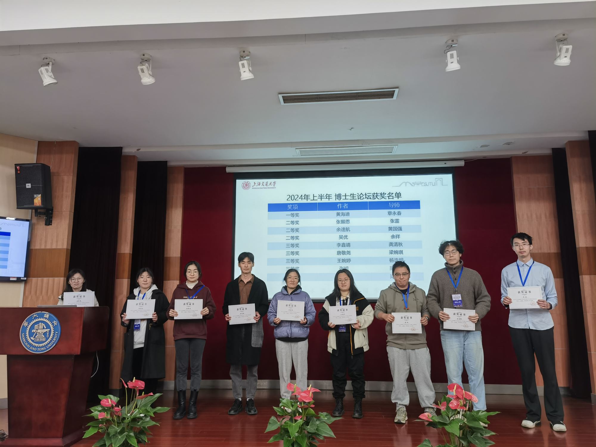 随后公布了上半年博士生论坛的获奖作品,并进行颁奖仪式。