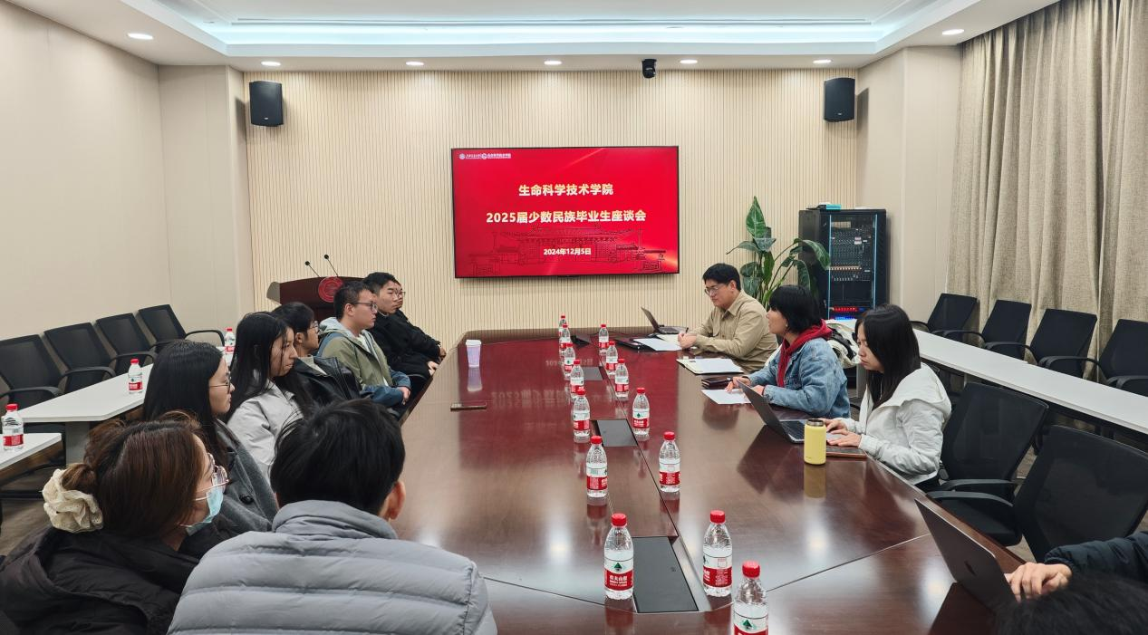 2024年12月5日,生命科学技术学院2025届少数民族毕业生座谈会在生命药学楼2-116会议室举行。学院党委副书记张燕红,学生办主任宣璇,思政教师辅导员代表以及2025届少数民族毕业生代表参加座谈。