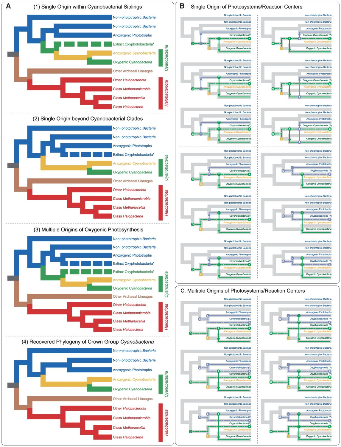 研究团队综合运用比较基因组学、谱系发生分析和分子钟定年技术,发现多个原核生物谱系在冠群蓝细菌出现前就已进化出对氧化胁迫的适应性机制。这一时序悖论暗示:在现存蓝细菌主导的产氧光合作用起源之前,地球上可能已经存在更古老的生物光合产氧途径。本研究提出,这些可能起源于古太古代(约36-32亿年前)的原始光养生物,或是推动原核生物对氧化胁迫适应机制的重要演化驱动力。相关成果为理解原核生物对氧化胁迫的适应过程,光合作用的起源与演化路径,以及地球氧化环境形成机制提供了关键分子证据。