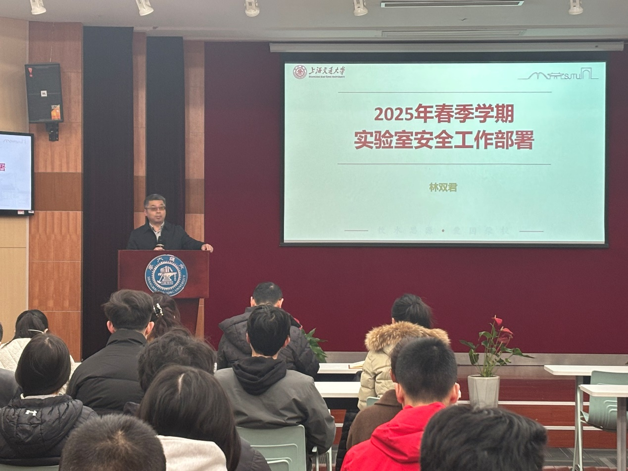 2025年3月18日,生命科学技术学院于树华报告厅召开实验室安全工作部署会议。同时,为贯彻落实校园消防安全工作要求,全面提升实验室安全管理水平,增强师生消防安全意识和应急处置能力,学院组织全体实验室安全员集中观看由国家消防救援局、教育部联合推出的"2025年春季全国高校消防安全公开课"。副院长林双君及实验室安全管理相关人员70余人参加,会议由实验室与公共资源管理办公室主任谭晶主持。