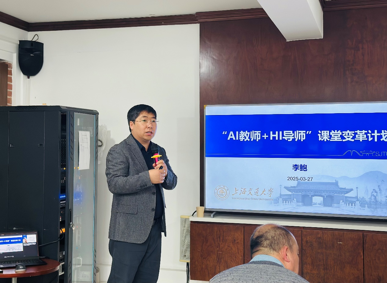 2025年3月27日,生命科学技术学院教学发展分中心主办的第24期教学沙龙在学院教工之家举行。本次活动以“‘AI教师+HI导师’教学变革”为主题,旨在探讨人工智能与教育深度融合的创新实践,为学院教师提供了宝贵的学习与交流平台。活动特别邀请学校教学发展中心综合办副主任、“人工智能+教育”专项基金负责人李鲍,分享“AI教师+HI导师”课堂变革计划的背景、进展及人工智能赋能教学实践的深度思考。