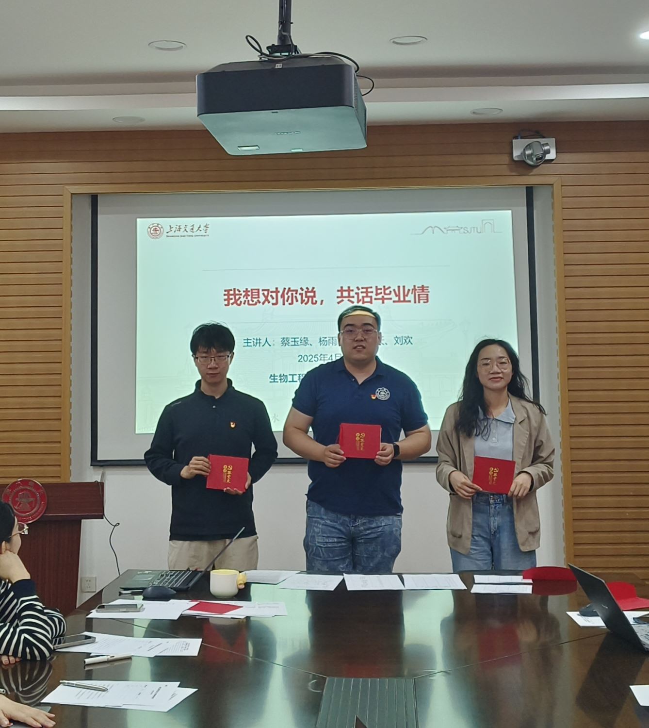 为以党建引领毕业季,充分发挥毕业党员优秀模范作用,做好毕业党员教育工作,同时落实深入融合“党建+科研创新”的工作规划,2025年4月29日,生物工程系研究生第一党支部于生物药学楼3-105举行“我想对你说”毕业党员分享交流暨转出前教育活动。