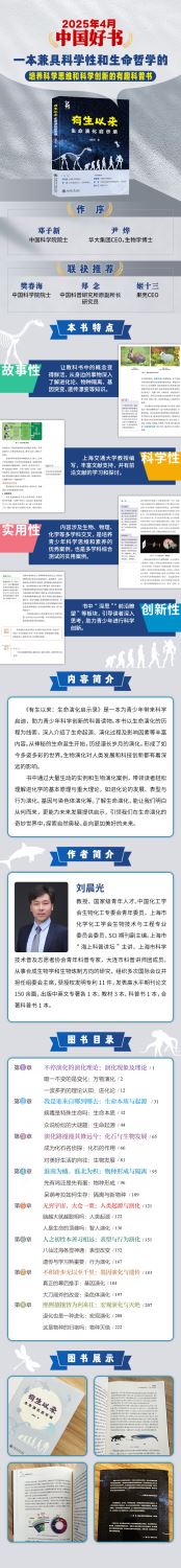 《有生以来:生命演化启示录》是一本为青少年带来科学启迪,助力青少年科学创新的科普读物。本书以生命演化的历程为线索,深入介绍了生命起源、演化过程及影响因素等丰富内容。从神秘的生命诞生开始,历经漫长岁月的演化,形成了如今多姿多彩的世界。生物演化对人类发展和科技创新都有着深远的影响。