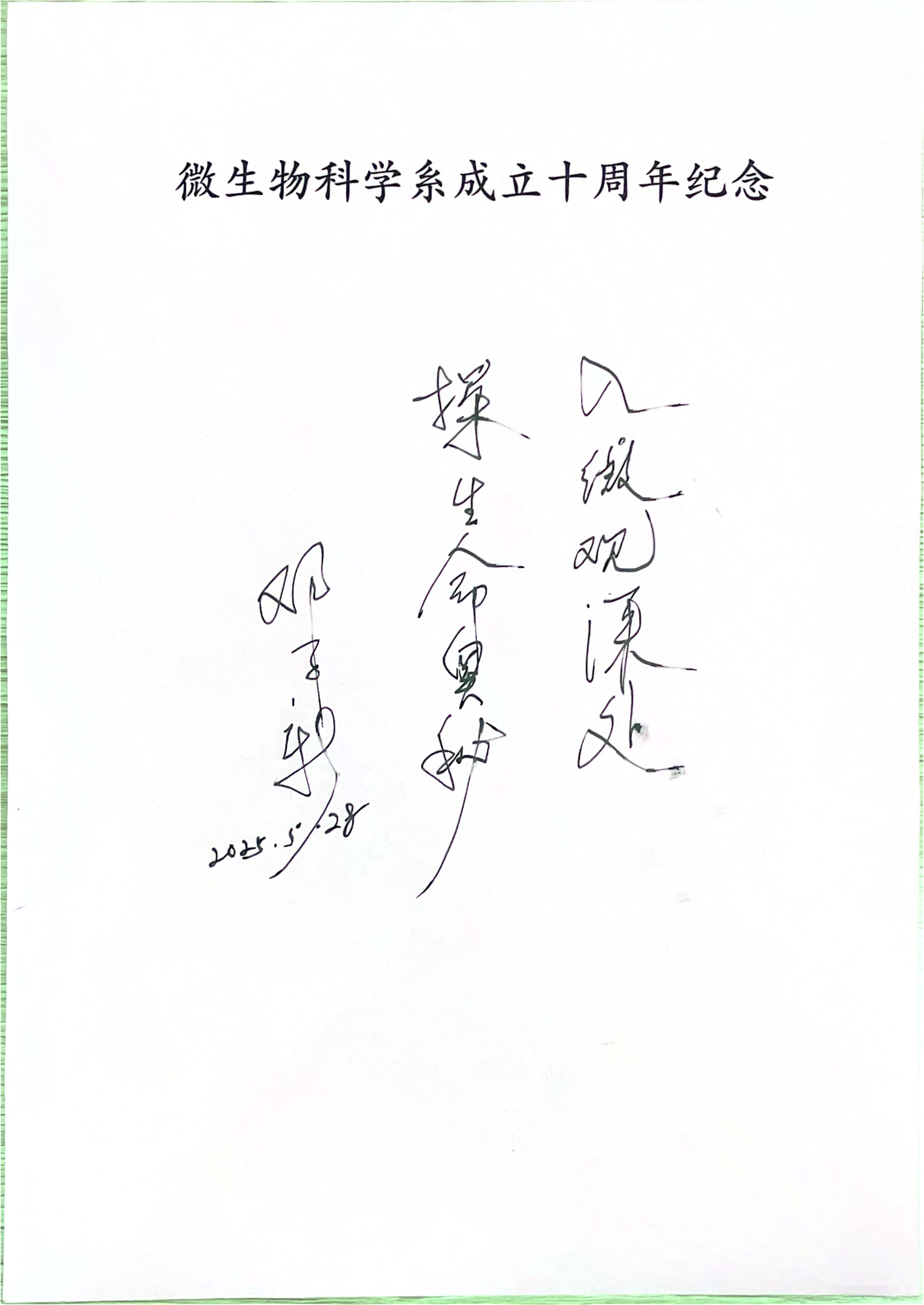 邓子新院士在主题发言中指出,交大微生物科学系自建系十年来,已发展成为具有国际影响力的微生物科学研究中心,在微生物基础研究和合成生物学等领域取得了多项突破性成果。邓子新院士特别题写“入微观深处 探生命奥秘”的寄语,勉励全系师生继续在微生物科学领域勇攀高峰。