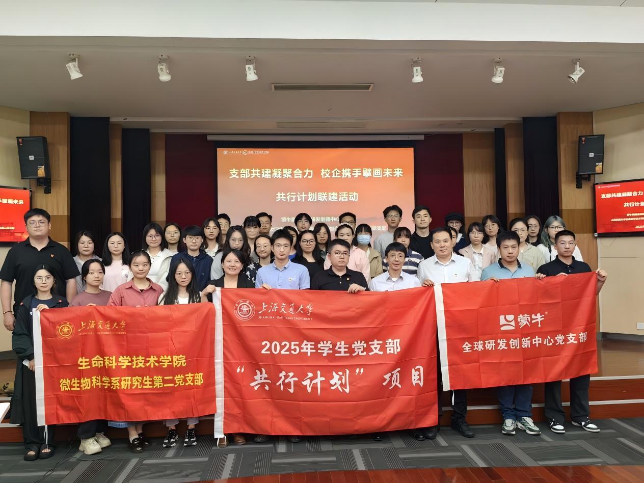 为深入学习贯彻习近平新时代中国特色社会主义思想和党的二十大精神,推动产学研深度融合,2025年6月11日,上海交通大学生命科学技术学院微生物科学系研究生第二党支部与蒙牛集团全球研发创新中心党支部在生命药学楼树华多功能厅举行“支部共建凝聚合力,校企携手擘画未来”共建活动。蒙牛集团全球研发创新中心党支部副书记、科研发展与转化部总监史玉东,蒙牛集团全球研发创新中心微生态技术研究部总经理、生命科学技术学院2010届博士生校友毛跃建,蒙牛集团全球研发创新中心对外合作总监苏胜鹏及蒙牛集团全球研发创新中心党支部全体党员,生命科学技术学院党委副书记张燕红,微生物科学系研究生第二党支部全体党员,微生物科学系研究生代表等出席活动。活动由学院学生党建指导老师陈伟志主持。