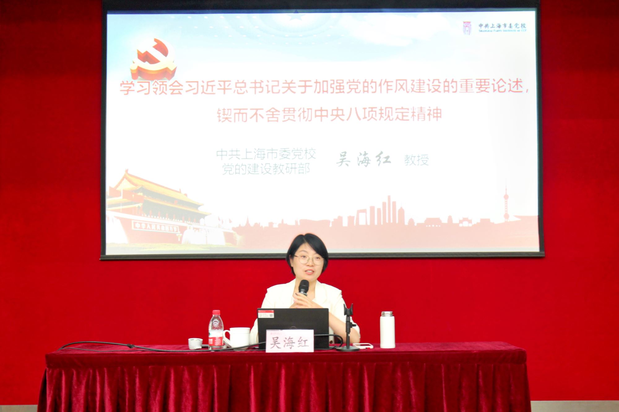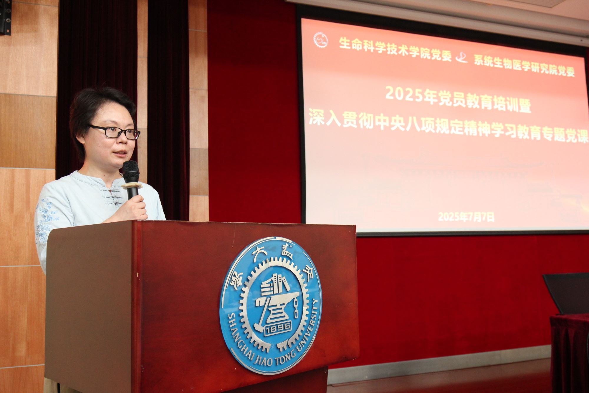 2025年7月7日,生命科学技术学院联合系统生物医学研究院党员教育培训暨深入贯彻中央八项规定精神学习教育专题党课,邀请上海市委党校党的建设教研部教授吴海红老师做专题辅导报告。两个单位党政领导班子、党委委员、师生党支部书记、师生党员近200人参加学习。活动由生命科学技术学院党委副书记王鑫主持。