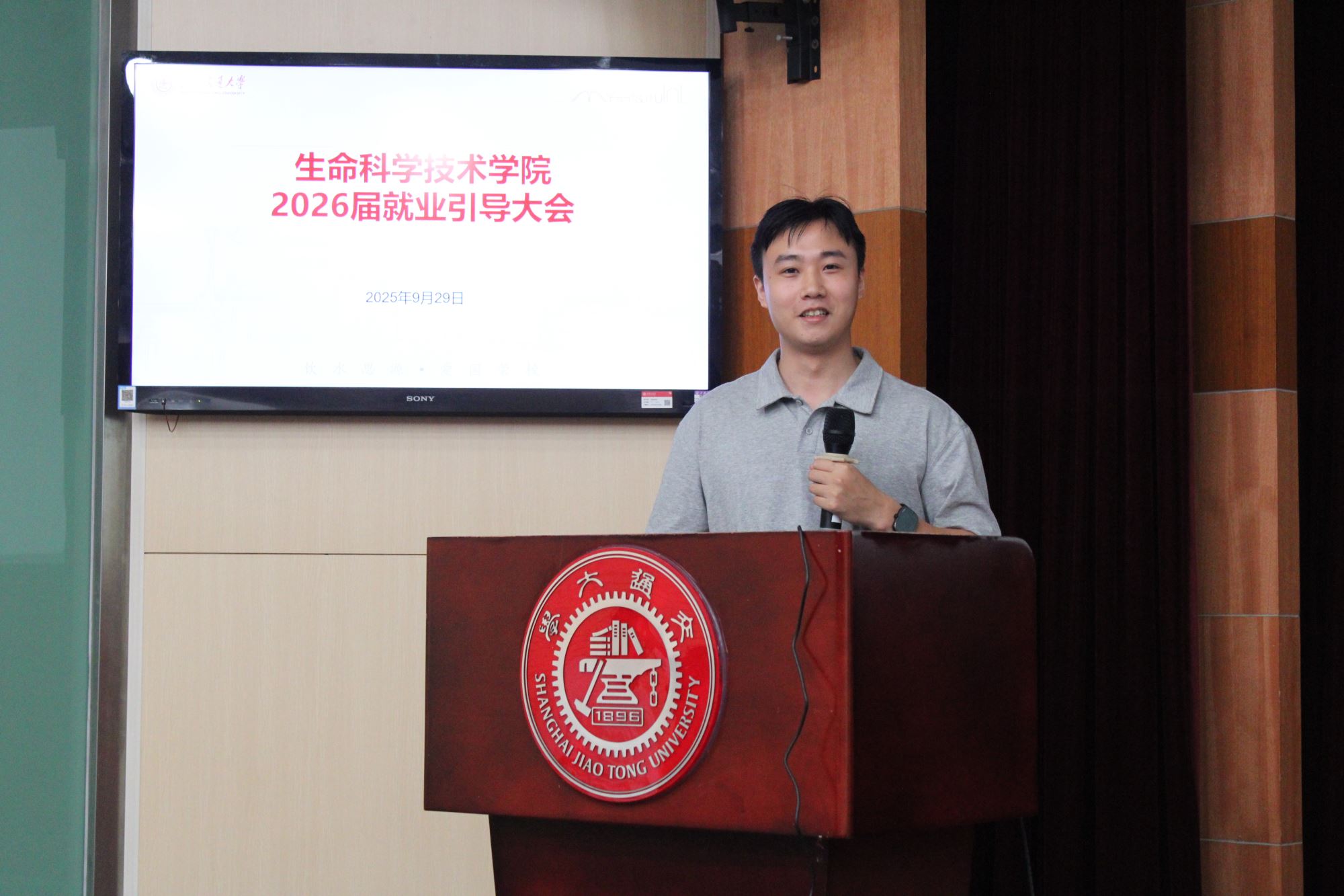 为强化就业引导效能,提升就业引导质量,全面推进就业工作,2025年9月29日,上海交通大学生命科学技术学院在生命药学楼树华多功能厅举办2026届毕业生就业动员大会。学院党委副书记张燕红,毕业生校友代表雷学勤、崔浩天、袁江鸿、邹敏文,2025级研究生新生骨干及全体2026届毕业生出席大会,会议由学院就业工作指导老师陈泽主持。