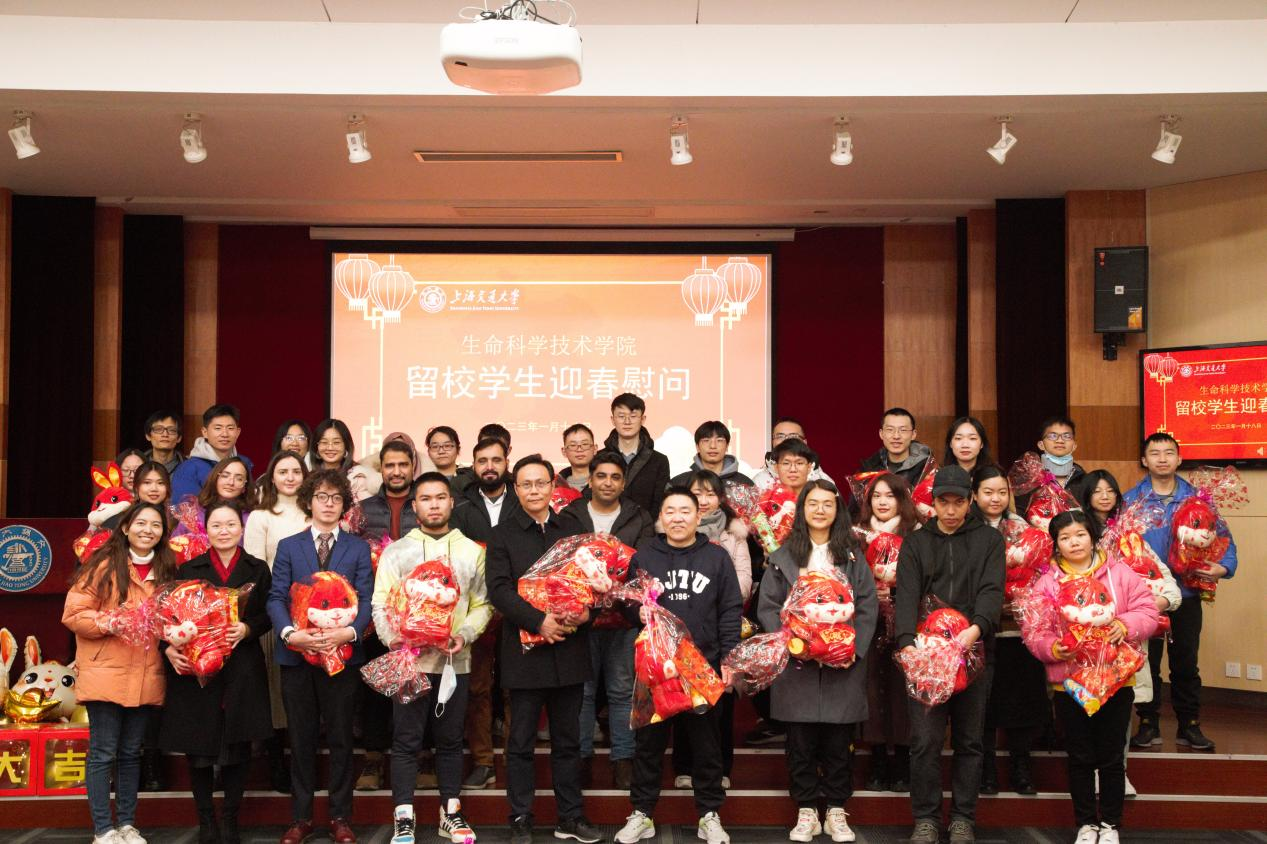 On Jan 18th, 2023, New Year celebration for students stay-at-school were successfully held at Shuhua Multi-function Hall by School of Life Sciences and Biotechnology. Gu Jianping, Secretary of CPC Committee, SLSB, and representative teachers and students were present.