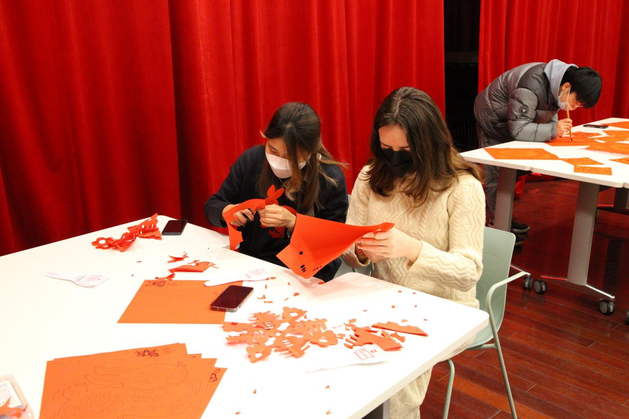 In addition, there was a series of activities prepared for the students, including Practising Chinese Calligraphy Fu(福), Paper-cutting for Window Decoration, Touhu game, and Lantern Riddles Guessing. The hall was full with happiness and good wishes.