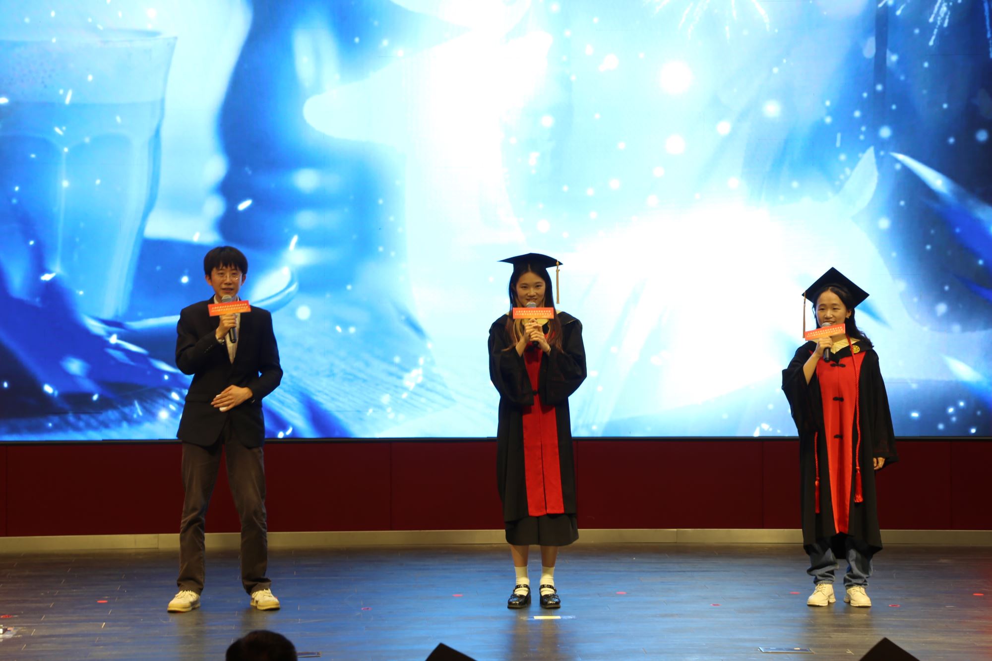 In the beginning of the ceremony, representative teachers and graduates presented a song performance together.