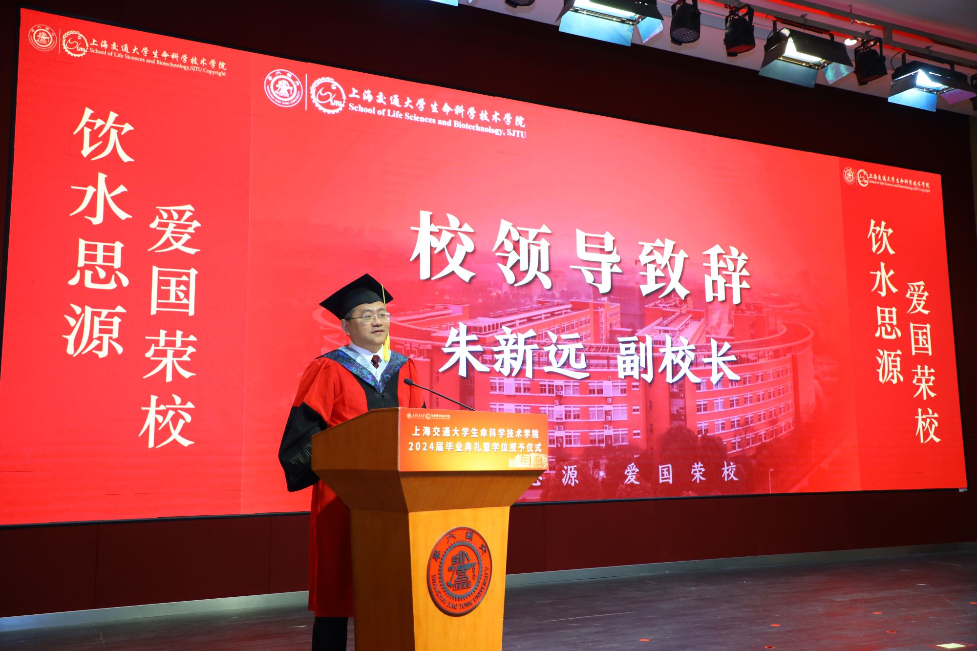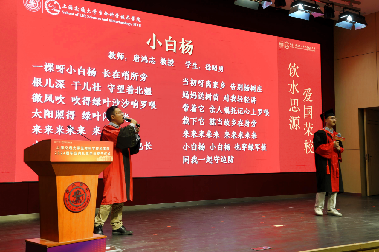 On the afternoon of June 25, 2024, the 2024 Graduation Ceremony and Degree Conferral Ceremony of the School of Life Sciences and Biotechnology was successfully held in Li Zhengdao Lecture Hall. Xinyuan Zhu, Vice-President of SJTU, Xueli Zhang, alumnus of SLSB, Yan Zhang, Dean of SLSB, Jianping Gu, Secretary of the Party Committee of SLSB, representatives of faculty and teachers, and representatives of graduates, as well as representatives of the parents of the graduates were attended.