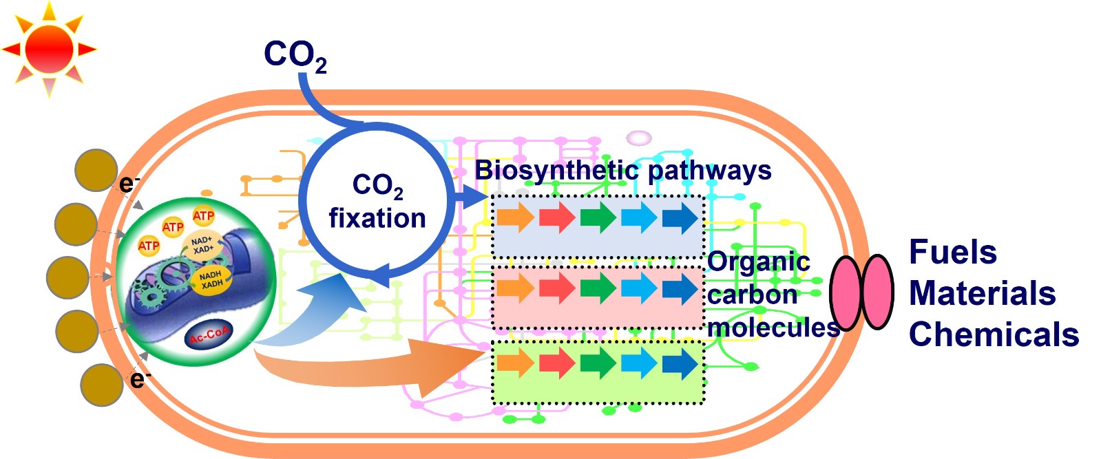 Reduction and conversion of CO2 to chemicals by autotrophic organisms is an attractive approach to reducing the atmospheric level of CO2. The goal of our work is to create artificial photoautotrophic cells with high performance. Based on understanding of metabolic regulatory mechanisms in natural photoautotrophs, we reprogram the energy and material flow of biological systems for improving photosynthetic efficiency.