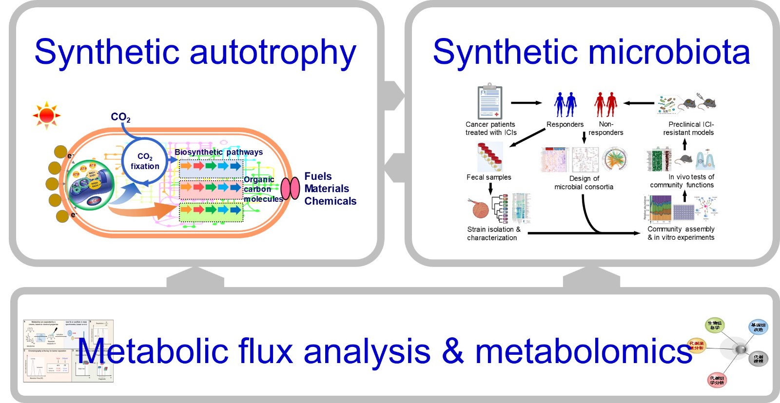 创新代谢研究共性关键技术的基础上,聚焦CO2人工生物转化和合成菌群用于疾病治疗,开展代谢调控与合成生物学研究。