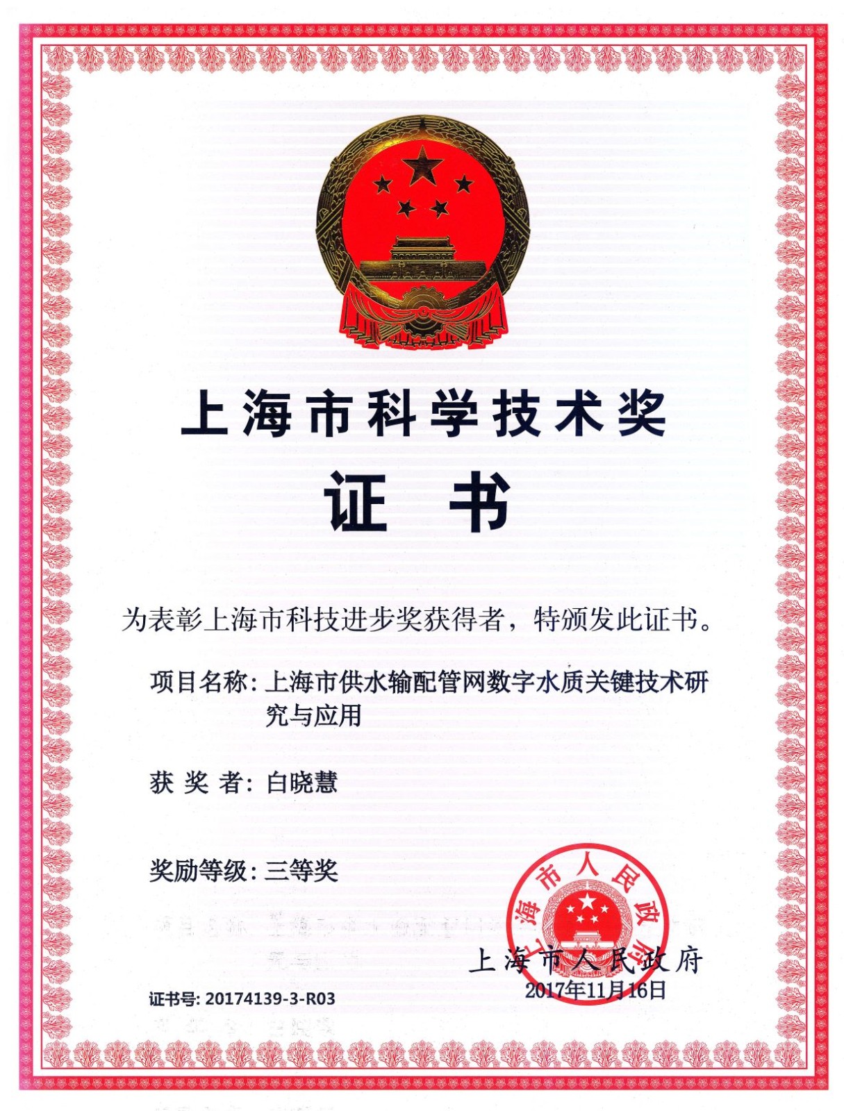 上海市水务局科研项目《上海市水质规划目标确定及供水水质准则研究》(2015.6-2016.5)