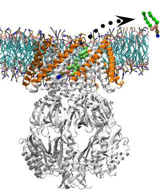我们通过全原子尺度和粗粒度尺度的分子动力学模拟,研究生物膜的结构与功能(比如其相分离机制、纳米尺度微观结构的形成、膜性质对蛋白结构与功能的影响等),药物分子与生物膜的相互作用、脂质体完成药物递送的分子机制等;我们还开发一些适用于生物膜体系的多尺度模拟的力场与方法。