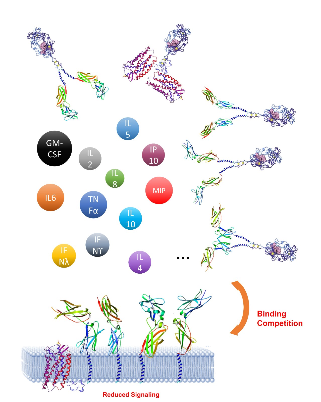 利用蛋白质设计手段,通过解析在生理和病理过程中具有重要作用的膜蛋白的分子机制,或是设计类抗体诱饵受体蛋白,拓宽其在生物医药中的应用。